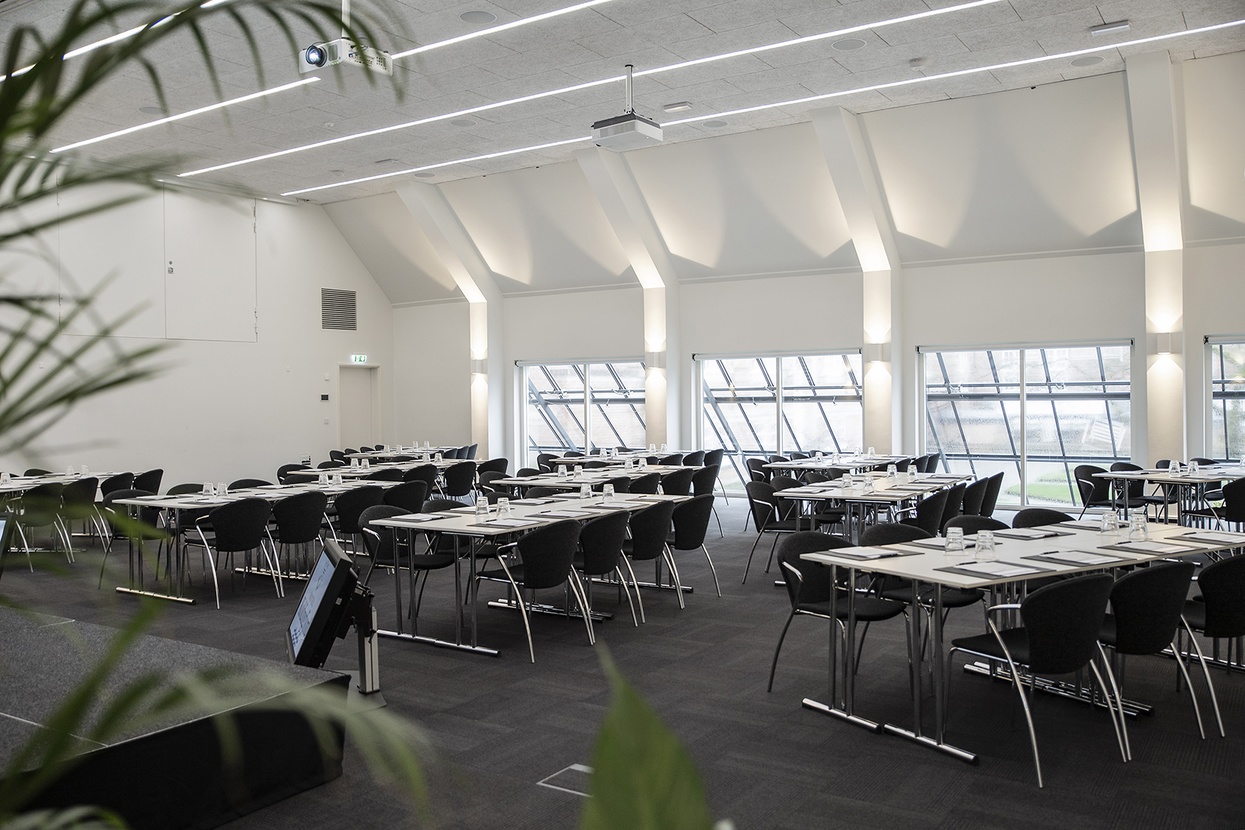 Bøgesalen 1+2 er samlet 210 m2, og kan deles op i to separate lokaler, hvis nødvendigt. Samlet kan der være op til 250 personer. Her er alt i moderne AV-udstyr, aircondition, stort lærred, gratis wifi, og udsigt til hotellets smukke gårdsplads.