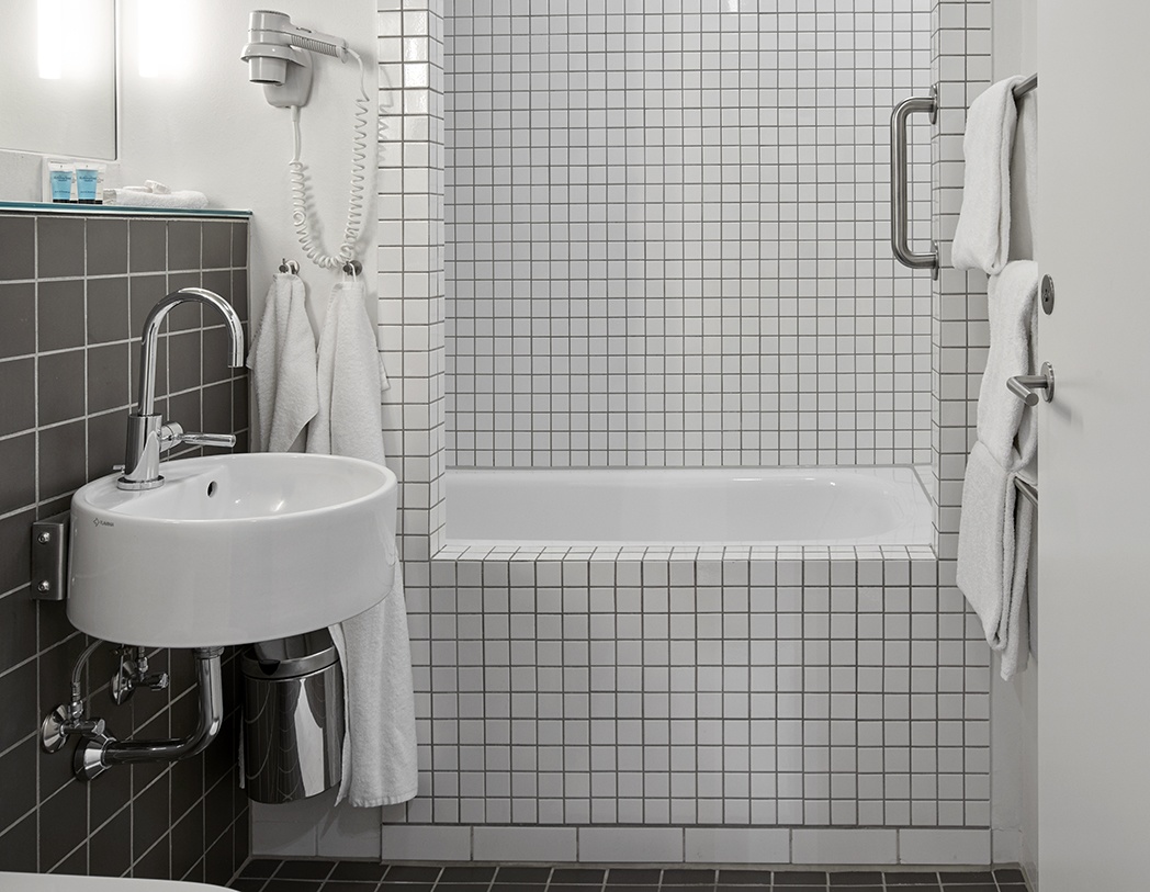 Herudover finder du på disse værelser også badekar, badekåbe, slippers samt eget pengeskab.