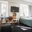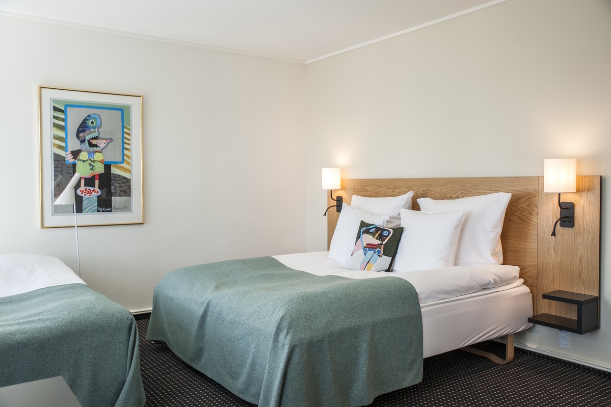 Alle familieværelser er indrettet med en sovesofa med 2 sovepladser, arbejdsbord, fladskærms TV med radiokanaler, telefon, minibar, strygejern og strygebræt, hårtørrer, gratis trådløs internetadgang samt eget kaffe/te sæt. Mangler du din smagsfavorit - skal du blot henvende dig til personalet i receptionen. Alle vores værelsespriser er inklusiv stor indbydende morgenbuffet.