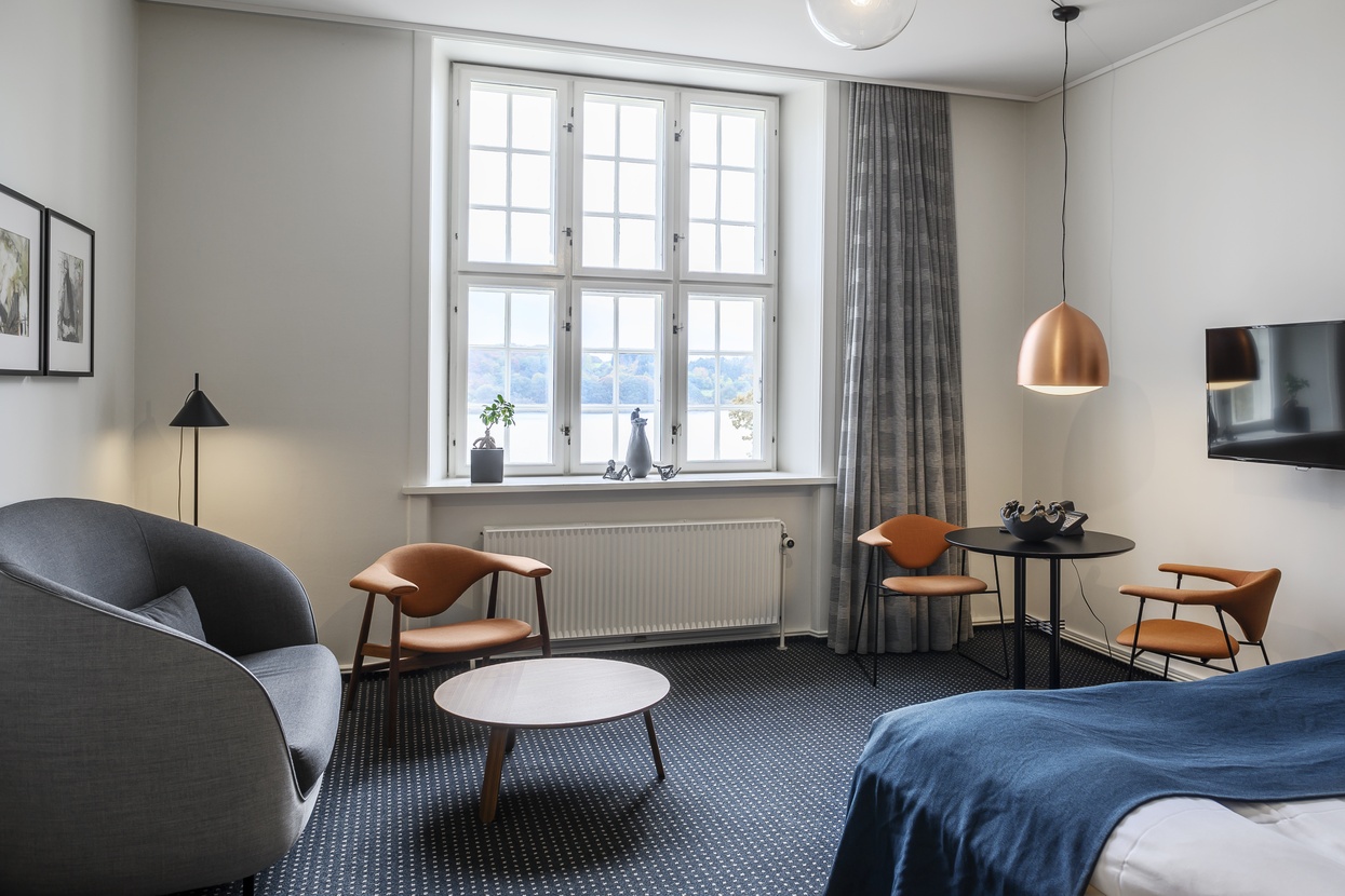 Hotel Koldingfjord råder over 132 værelser, heraf 5 designer juniorsuiter beliggende i hovedbygningen med udsigt ud over Kolding Fjord.
