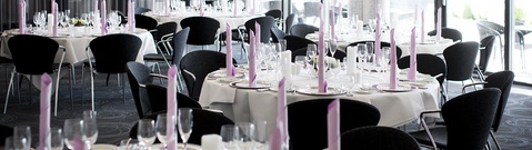 Her kan der være max 100 personer til stående reception. Fra lokalet er der direkte udgang til terrassen.