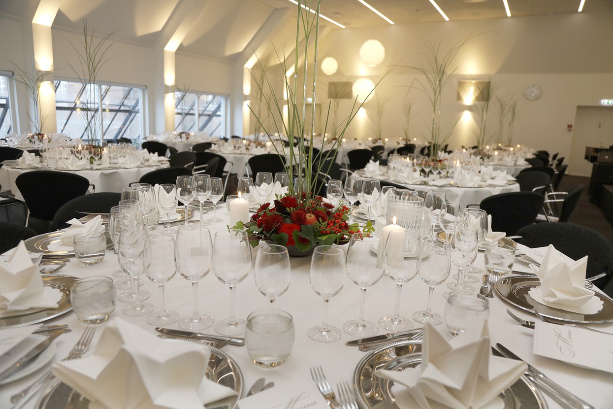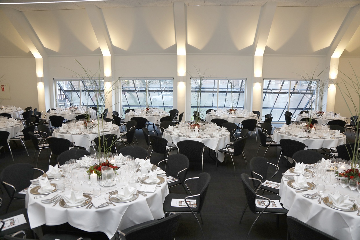 Den smukke sal ligger modsat hovedbygningen op mod vores private fredsskov og giver følelsen at have en af de prægtige bygninger for sig selv. I lokalet er der udsigt ud mod gården med de smukke magnolietræer og hovedbygningen på det anden side.